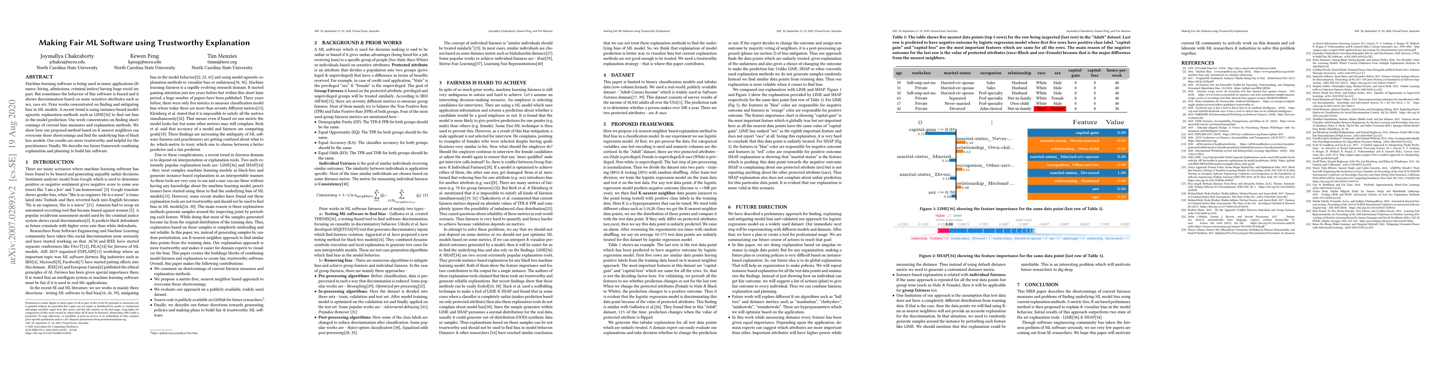 This paper critiques current methods for identifying bias in machine learning models, proposing a K nearest neighbors-based approach to provide more reliable explanations. It aims to build fair ML software by combining explanation and planning techniques.
