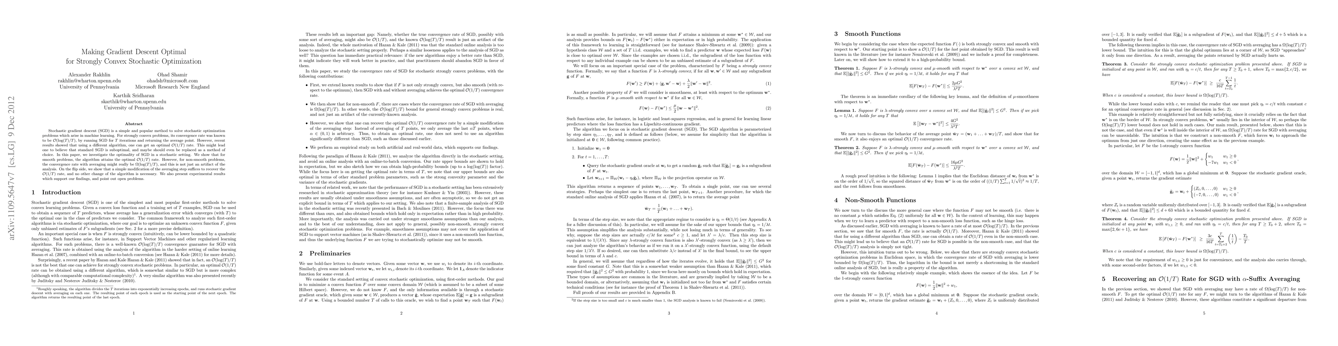 This paper investigates the optimality of stochastic gradient descent (SGD) for strongly convex problems, showing that while standard SGD achieves an optimal O(1/T) convergence rate for smooth problems, it may not for non-smooth ones. A simple averaging adjustment can recover the optimal rate for non-smooth problems.