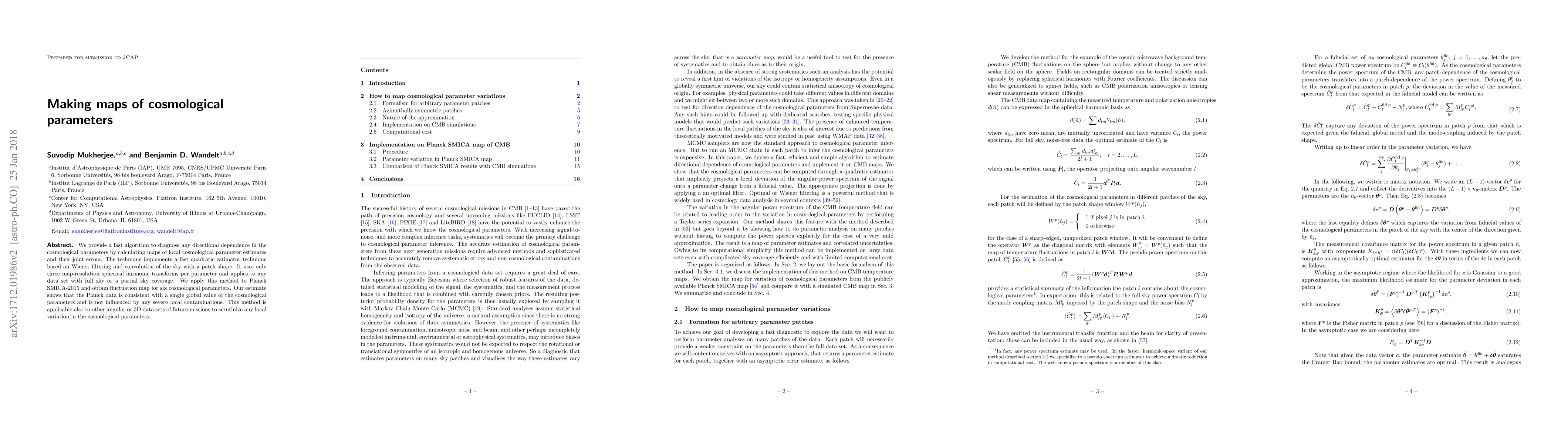 We provide a fast algorithm to diagnose any directional dependence in the cosmological parameters by calculating maps of local cosmological parameter estimates and their joint errors. The technique implements a fast quadratic estimator technique based on Wiener filtering and convolution of the sky with a patch shape. It uses only three map-resolution spherical harmonic transforms per parameter and applies to any data set with full sky or a partial sky coverage. We apply this method to Planck SMICA-2015 and obtain fluctuation map for six cosmological parameters. Our estimate shows that the Planck data is consistent with a single global value of the cosmological parameters and is not influenced by any severe local contaminations. This method is applicable also to other angular or 3D data sets of future missions to scrutinize any local variation in the cosmological parameters.