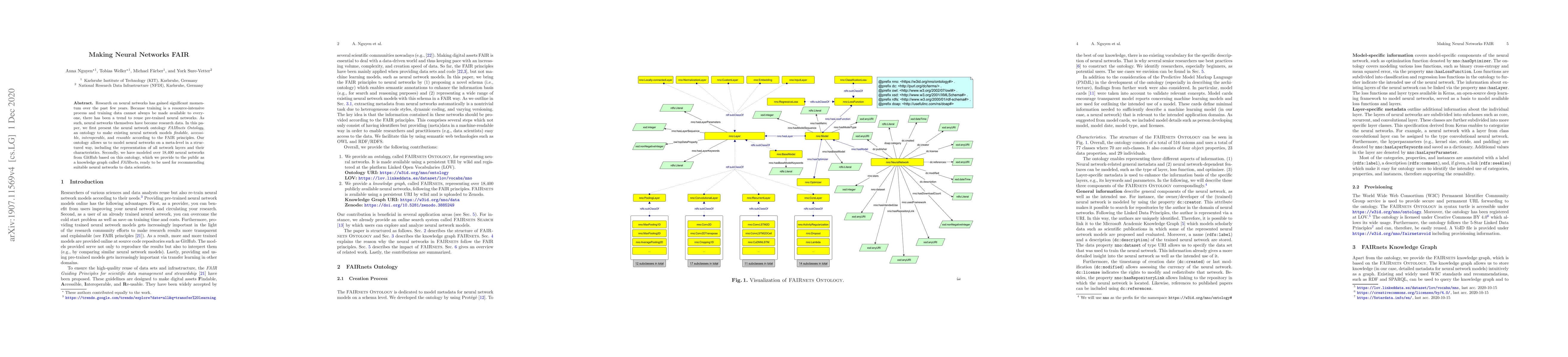 This paper introduces FAIRnets Ontology to make neural network models findable, accessible, interoperable, and reusable per FAIR principles. It models over 18,400 neural networks from GitHub into a public knowledge graph called FAIRnets for recommending suitable networks to data scientists.