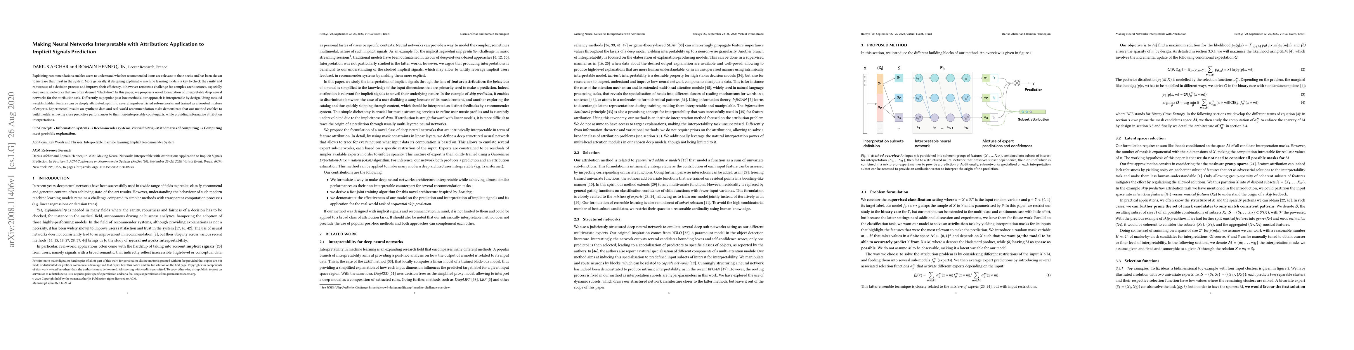 This paper proposes a novel interpretable deep neural network approach for attribution tasks, particularly for implicit signals prediction. Unlike post-hoc methods, the approach is inherently interpretable by design, utilizing masked weights and a boosted mixture of experts. Experimental results show it maintains predictive performance while offering informative interpretations.