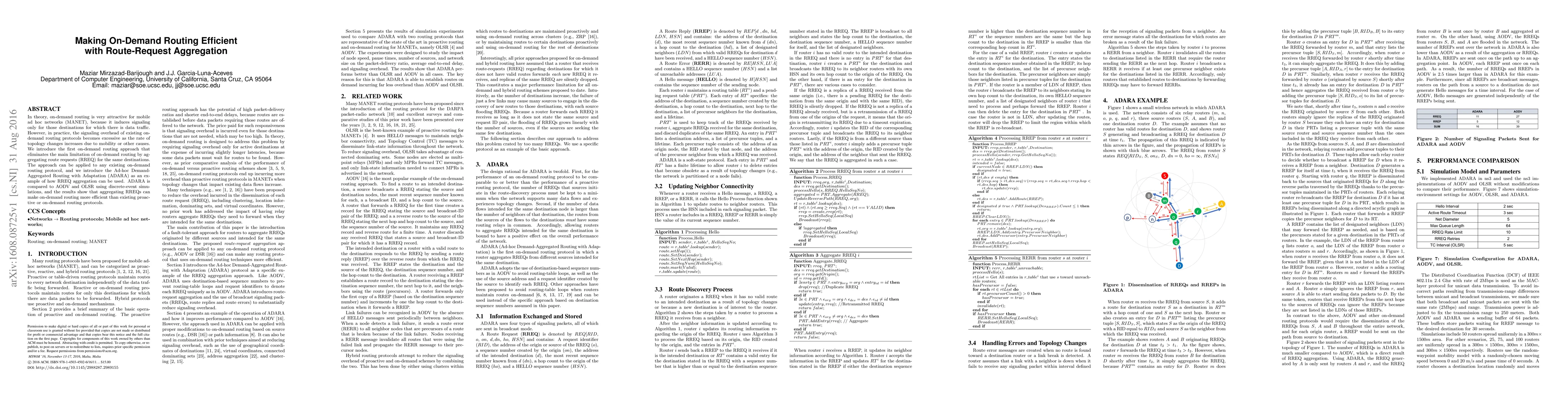 This paper proposes a method for enhancing on-demand routing in mobile ad hoc networks by aggregating route requests to reduce signaling overhead. The introduced ADARA protocol demonstrates improved efficiency compared to AODV and OLSR through simulation.