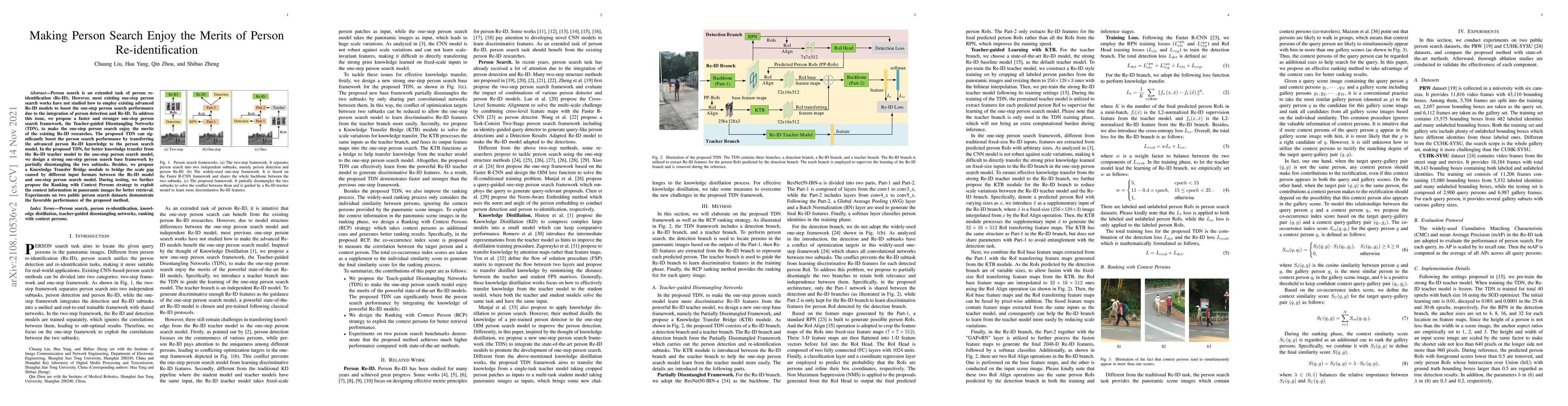 This paper proposes a Teacher-guided Disentangling Networks (TDN) framework to enhance one-step person search by leveraging advanced person re-identification (Re-ID) models. The TDN framework includes a Knowledge Transfer Bridge module and a Ranking with Context Persons strategy to improve performance, demonstrating better results on public datasets.