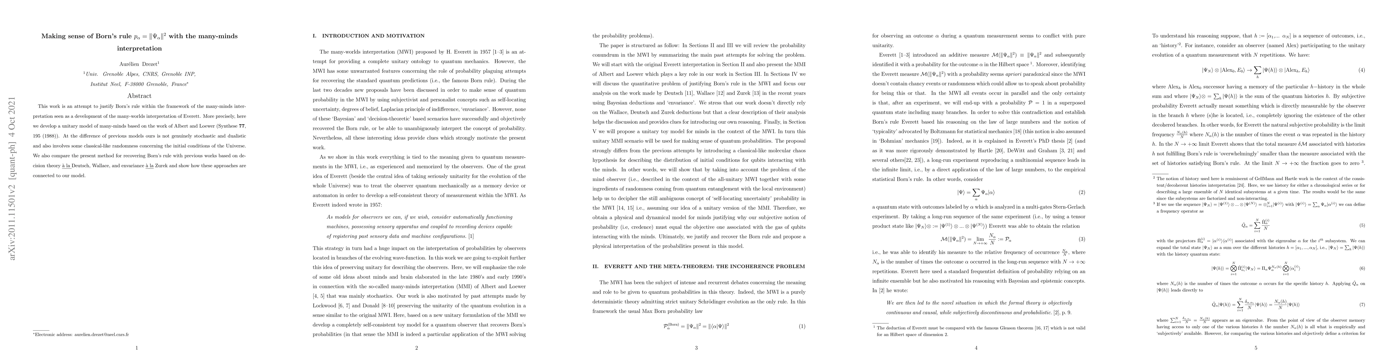 This paper justifies Born's rule within the many-minds interpretation of quantum mechanics, contrasting it with previous stochastic models. It proposes a unitary model incorporating classical-like randomness and compares its approach to recovering Born's rule with decision theory and envariance-based methods.