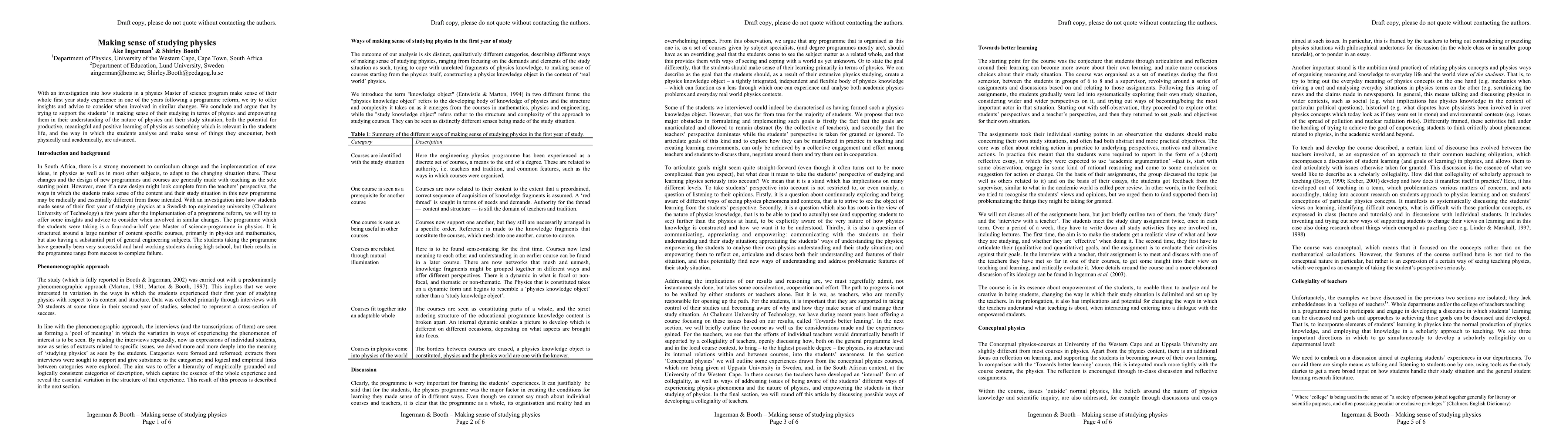 With an investigation into how students in a physics Master of science program make sense of their whole first year study experience in one of the years following a programme reform, we try to offer insights and advice to consider when involved in similar changes. We conclude and argue that by trying to support the students' in making sense of their studying in terms of physics and empowering them in their understanding of the nature of physics and their study situation, both the potential for productive, meaningful and positive learning of physics as something which is relevant in the students life, and the way in which the students analyse and make sense of things they encounter, both physically and academically, are advanced.