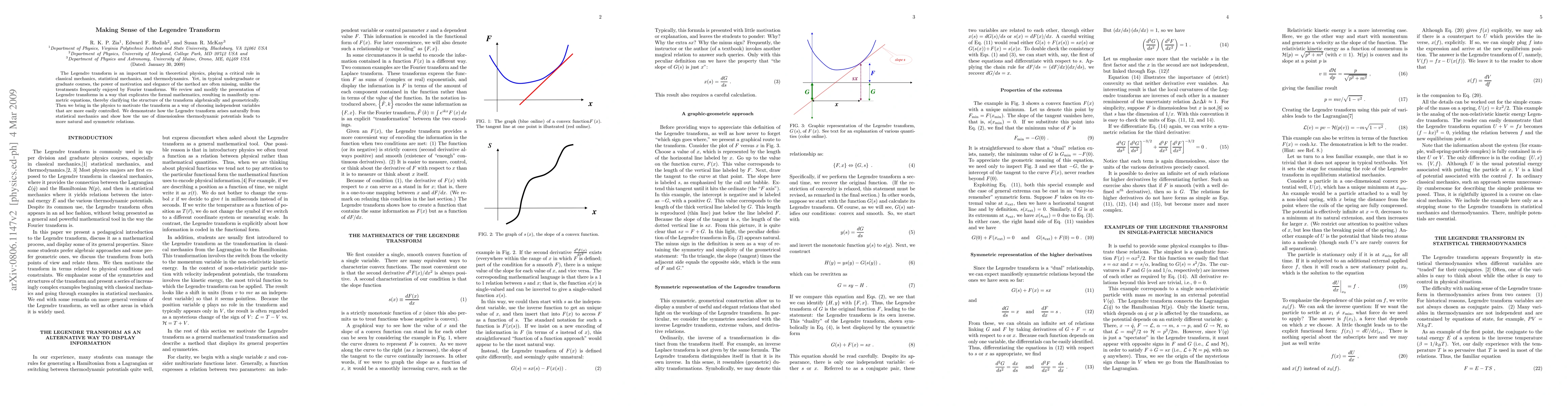 This paper reviews and reformulates the Legendre transform to highlight its mathematical elegance and physical motivation, emphasizing symmetry and the choice of independent variables for better control. It demonstrates the natural emergence of the transform in statistical mechanics and the benefits of using dimensionless thermodynamic potentials.