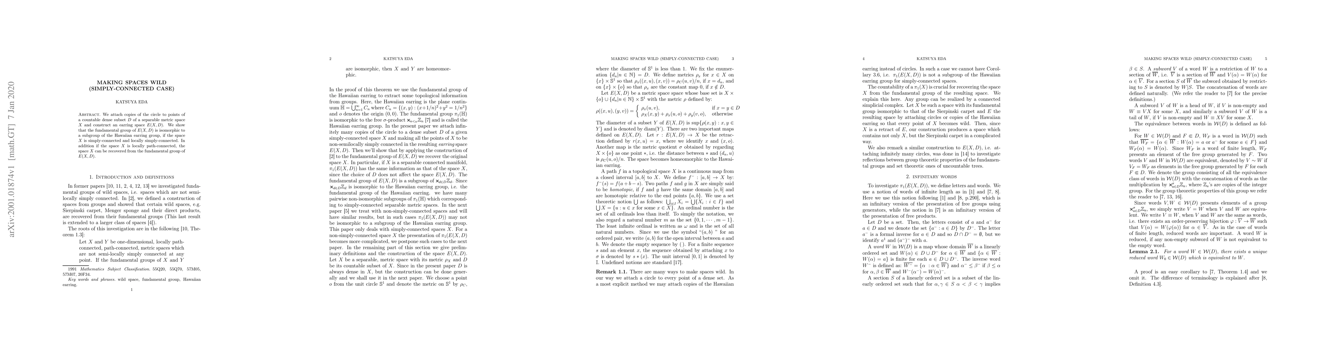 We attach copies of the circle to points of a countable dense subset $D$ of a separable metric space $X$ and construct an earring space $E(X,D)$. We show that the fundamental group of $E(X,D)$ is isomorphic to a subgroup of the Hawaiian earring group, if the space $X$ is simply-connected and locally simply-connected. In addition if the space $X$ is locally path-connected, the space $X$ can be recovered from the fundamental group of $E(X,D)$.