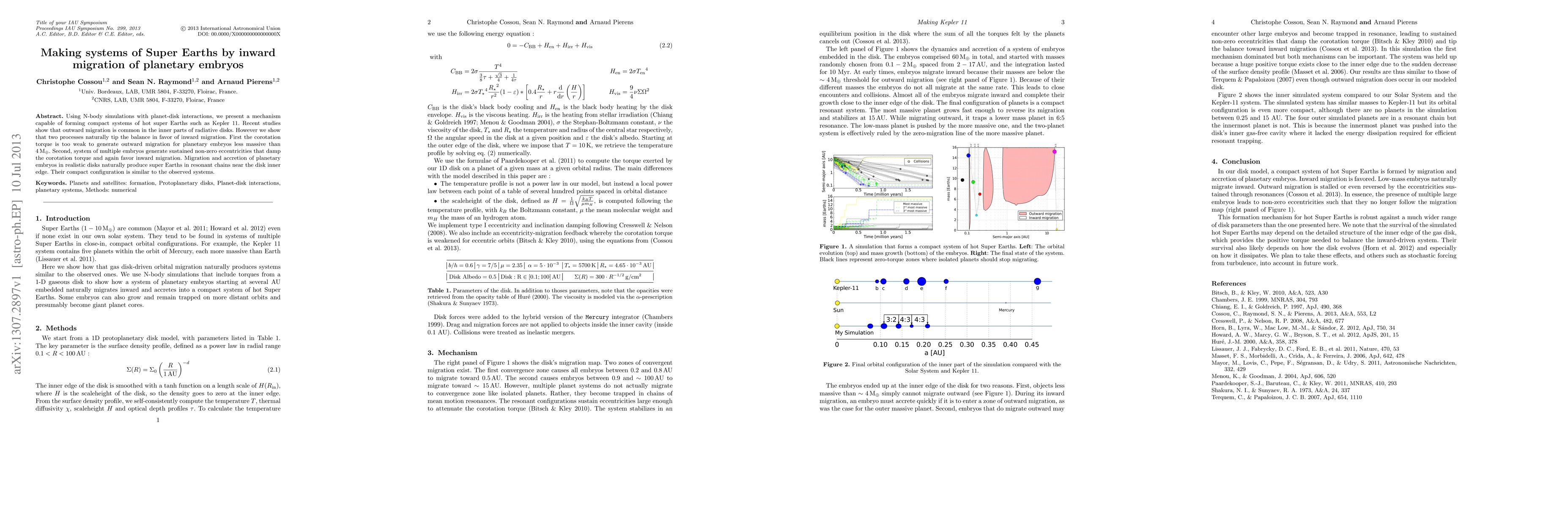 This paper uses N-body simulations to demonstrate how inward migration of planetary embryos can form compact systems of hot super Earths, similar to Kepler 11. The study identifies two processes favoring inward migration: weak corotation torque for less massive embryos and sustained eccentricities from multiple embryos that dampen this torque.