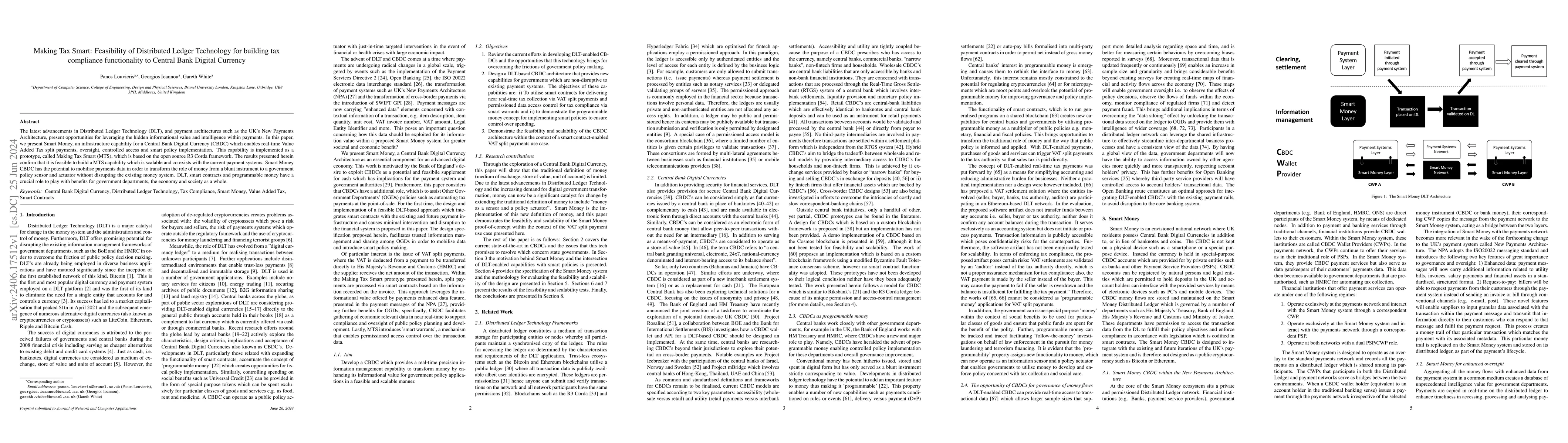This research explores the feasibility of using Distributed Ledger Technology (DLT) to enhance tax compliance within a Central Bank Digital Currency (CBDC) framework through a prototype called Making Tax Smart (MTS). The results show that integrating DLT for real-time tax oversight is scalable and compatible with existing payment systems, potentially transforming money into a policy sensor and actuator for government.