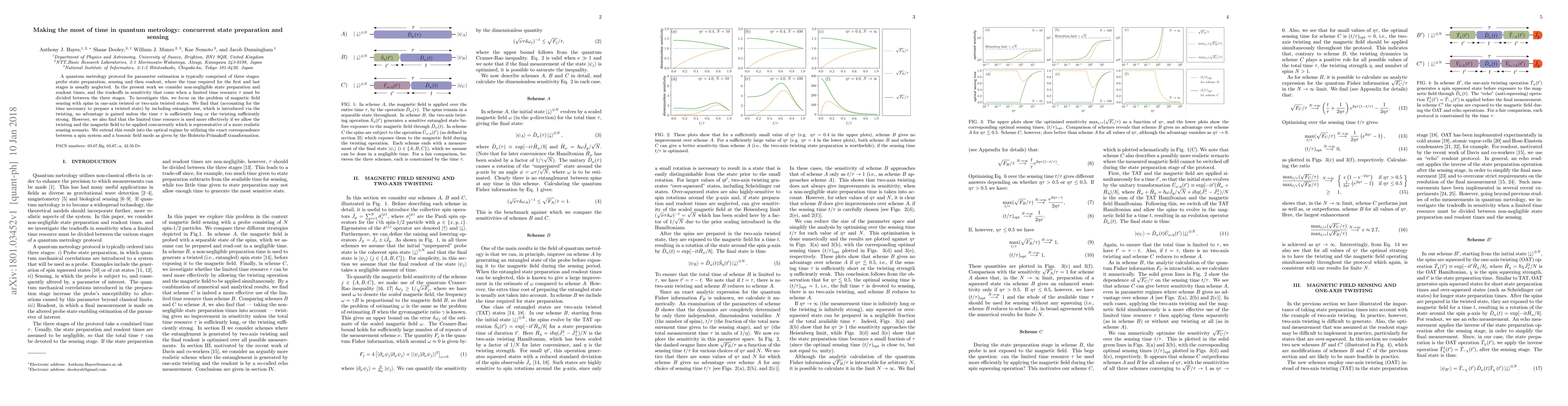 This paper explores the optimization of quantum metrology protocols by concurrently preparing states and sensing parameters, focusing on magnetic field sensing with entangled spins. It finds that while entanglement offers no benefit unless time or twisting strength is sufficiently high, concurrent preparation and sensing use the limited time resource more effectively.
