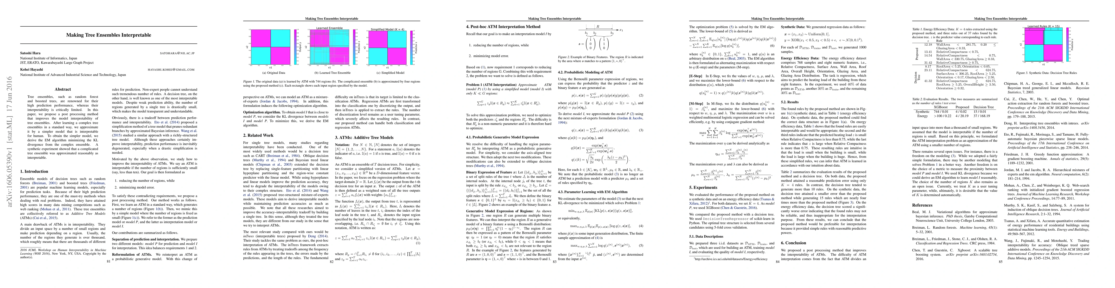 This paper proposes a post-processing method to enhance the interpretability of tree ensembles like random forests and boosted trees by approximating them with a simpler, more understandable model using an EM algorithm minimizing KL divergence. Synthetic experiments demonstrate the effectiveness of this approach.