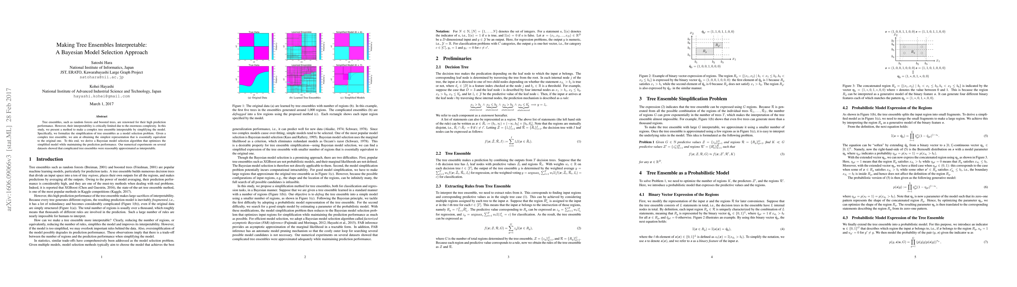 This paper proposes a Bayesian model selection approach to simplify complex tree ensembles like random forests, aiming to retain high prediction performance while enhancing interpretability. The method effectively reduces the model complexity, achieving reasonably accurate approximations on various datasets.