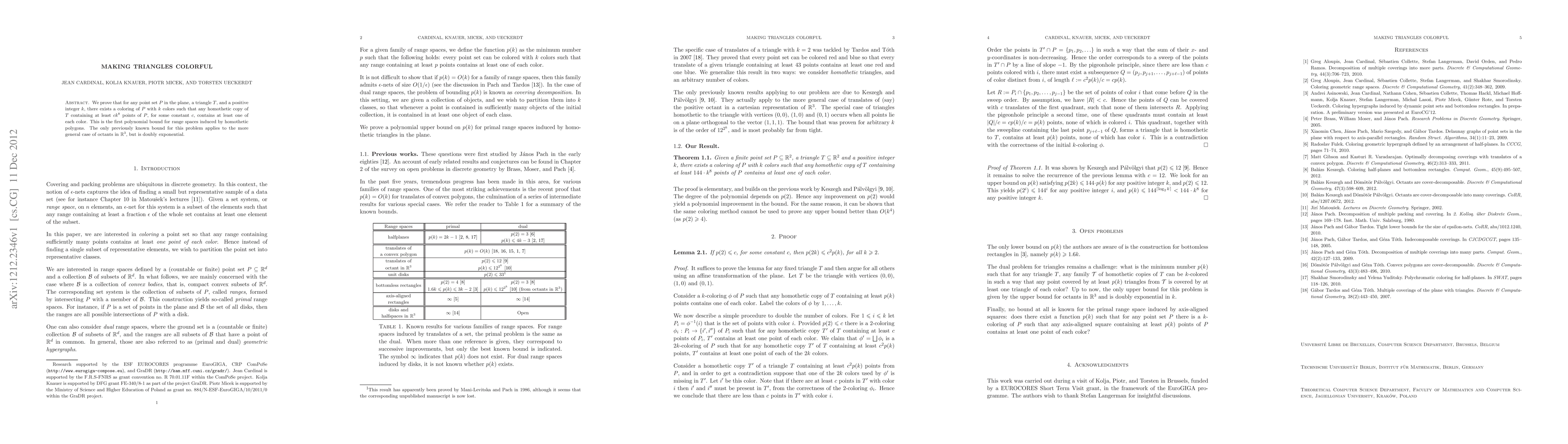 We prove that for any point set P in the plane, a triangle T, and a positive integer k, there exists a coloring of P with k colors such that any homothetic copy of T containing at least ck^8 points of P, for some constant c, contains at least one of each color. This is the first polynomial bound for range spaces induced by homothetic polygons. The only previously known bound for this problem applies to the more general case of octants in R^3, but is doubly exponential.