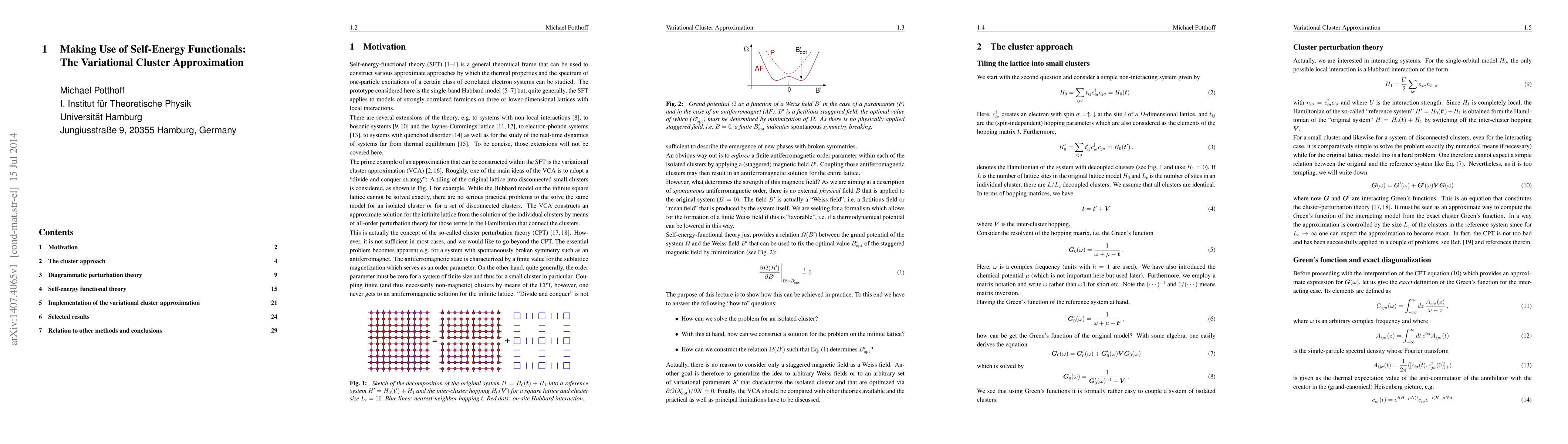 This paper introduces the variational cluster approximation as a method to solve complex electronic systems using self-energy functionals, with applications in cluster-perturbation theory and dynamical mean-field theory.