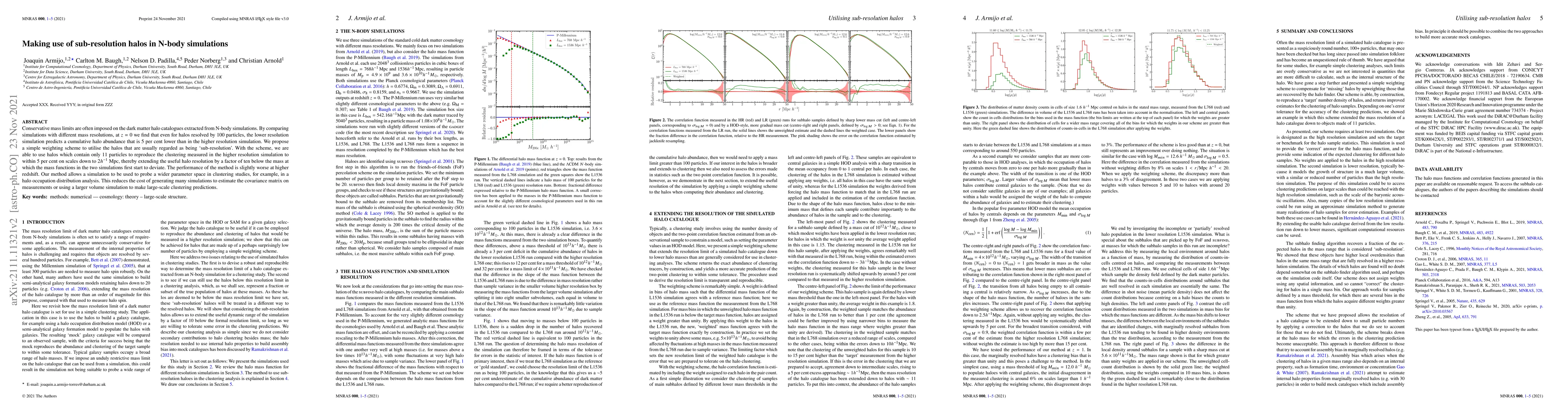 Conservative mass limits are often imposed on the dark matter halo catalogues extracted from N-body simulations. By comparing simulations with different mass resolutions, at $z=0$ we find that even for halos resolved by 100 particles, the lower resolution simulation predicts a cumulative halo abundance that is 5 per cent lower than in the higher resolution simulation. We propose a simple weighting scheme to utilise the halos that are usually regarded as being `sub-resolution'. With the scheme, we are able to use halos which contain only 11 particles to reproduce the clustering measured in the higher resolution simulation to within 5 per cent on scales down to $2 h^{-1}$ Mpc, thereby extending the useful halo resolution by a factor of ten below the mass at which the mass functions in the two simulations first start to deviate. The performance of the method is slightly worse at higher redshift. Our method allows a simulation to be used to probe a wider parameter space in clustering studies, for example, in a halo occupation distribution analysis. This reduces the cost of generating many simulations to estimate the covariance matrix on measurements or using a larger volume simulation to make large-scale clustering predictions.