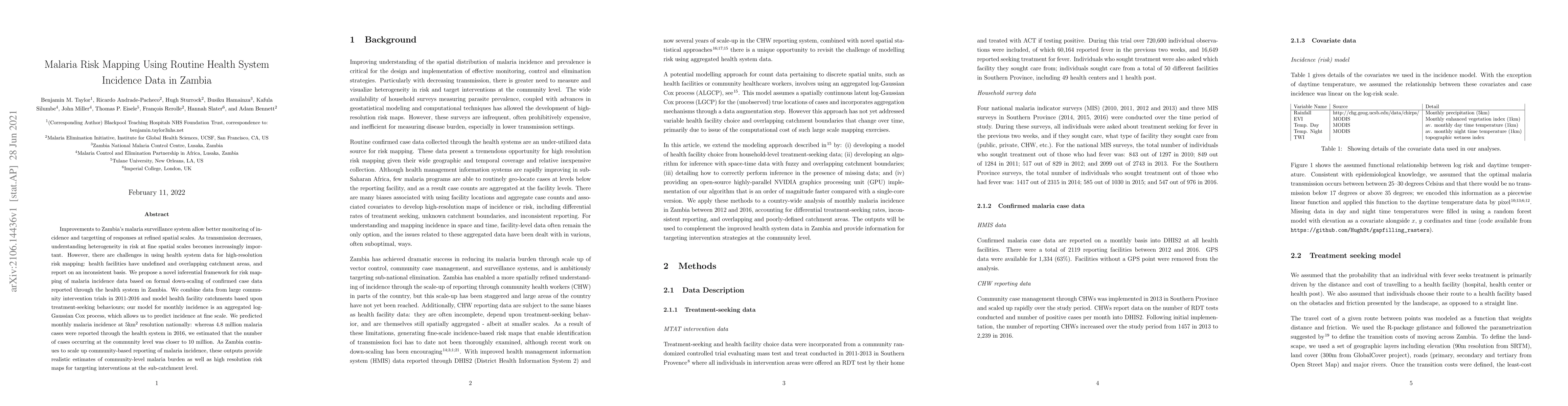 This paper proposes a novel inferential framework to map malaria risk in Zambia using routine health system data, revealing that community-level malaria incidence is likely double the reported cases. The model uses an aggregated log-Gaussian Cox process to predict incidence at a fine spatial scale, providing high-resolution risk maps for targeted interventions.