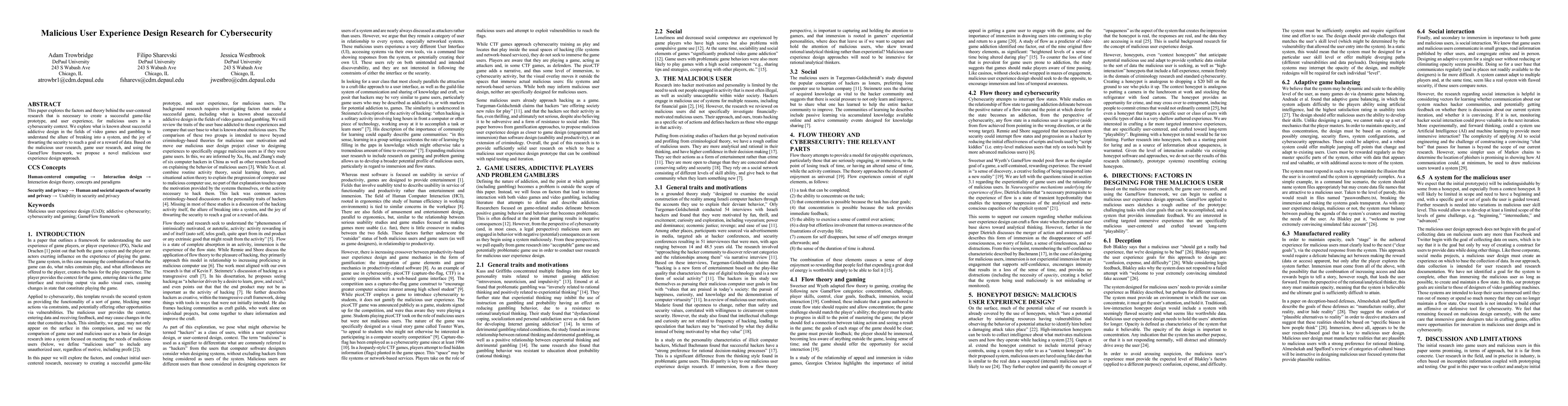 Researchers explored how to design engaging cybersecurity experiences that appeal to malicious users, drawing from video games and addictive design principles. They proposed a novel approach to create game-like prototypes that simulate the thrill of breaking into systems.