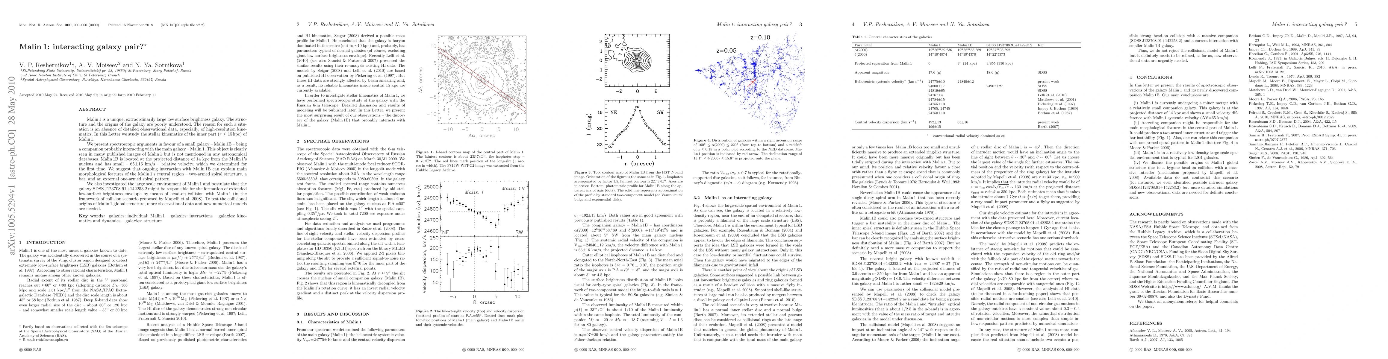 This paper investigates the stellar kinematics of Malin 1, suggesting that a nearby galaxy, Malin 1B, may be interacting with it, potentially explaining its unique spiral structure. The study also proposes another galaxy, SDSS J123708.91+142253.2, might have contributed to the formation of Malin 1's extended envelope through a head-on collision.