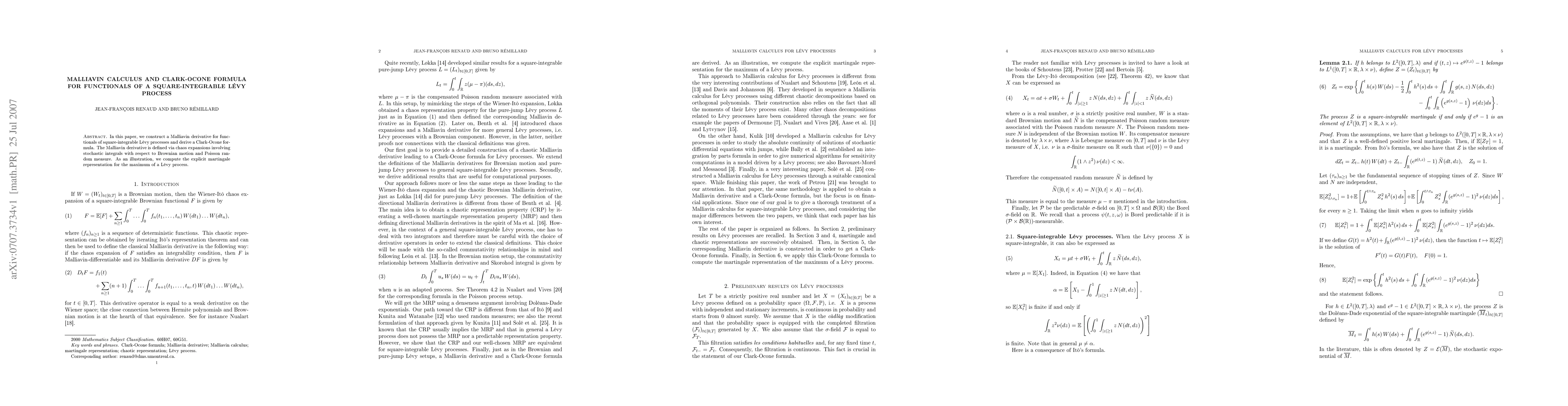 This paper constructs a Malliavin derivative for functionals of square-integrable Lévy processes and derives a Clark-Ocone formula using chaos expansions. It also computes the explicit martingale representation for the maximum of a Lévy process as an example.