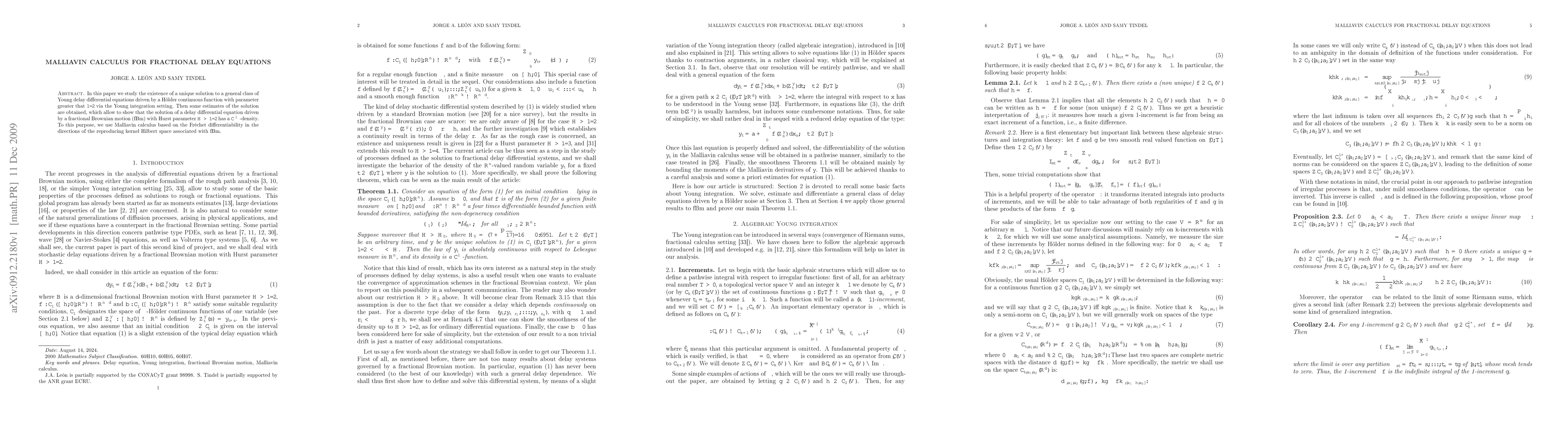 In this paper we study the existence of a unique solution to a general class of Young delay differential equations driven by a H\"older continuous function with parameter greater that 1/2 via the Young integration setting. Then some estimates of the solution are obtained, which allow to show that the solution of a delay differential equation driven by a fractional Brownian motion (fBm) with Hurst parameter H>1/2 has a smooth density. To this purpose, we use Malliavin calculus based on the Frechet differentiability in the directions of the reproducing kernel Hilbert space associated with fBm.