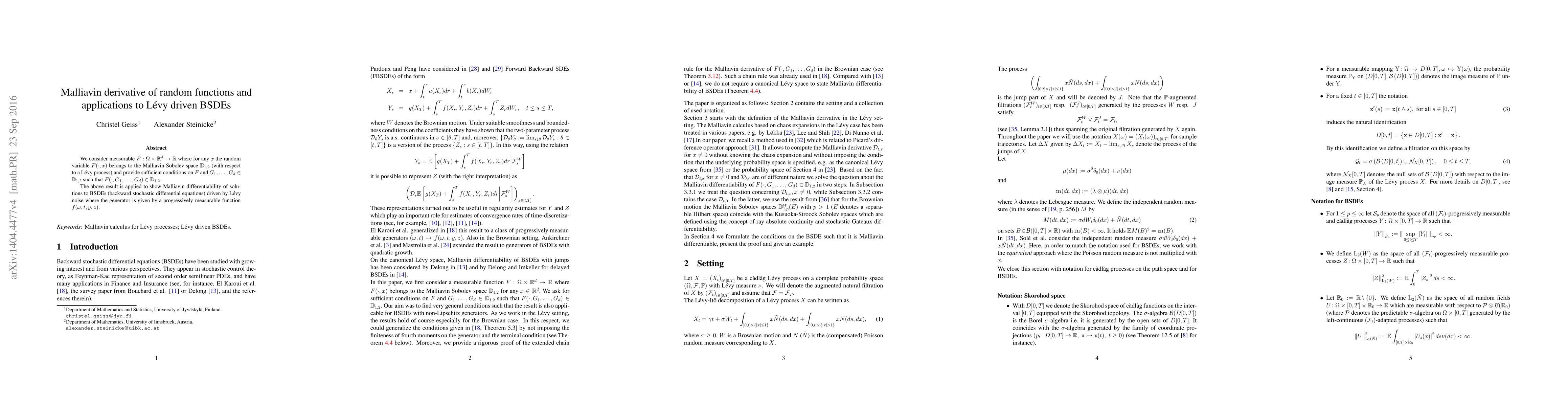 This paper investigates the Malliavin derivative for random functions and applies it to demonstrate the Malliavin differentiability of solutions to backward stochastic differential equations driven by Lévy processes. It provides conditions ensuring the differentiability of functions involving Lévy-driven processes within the Malliavin Sobolev space.