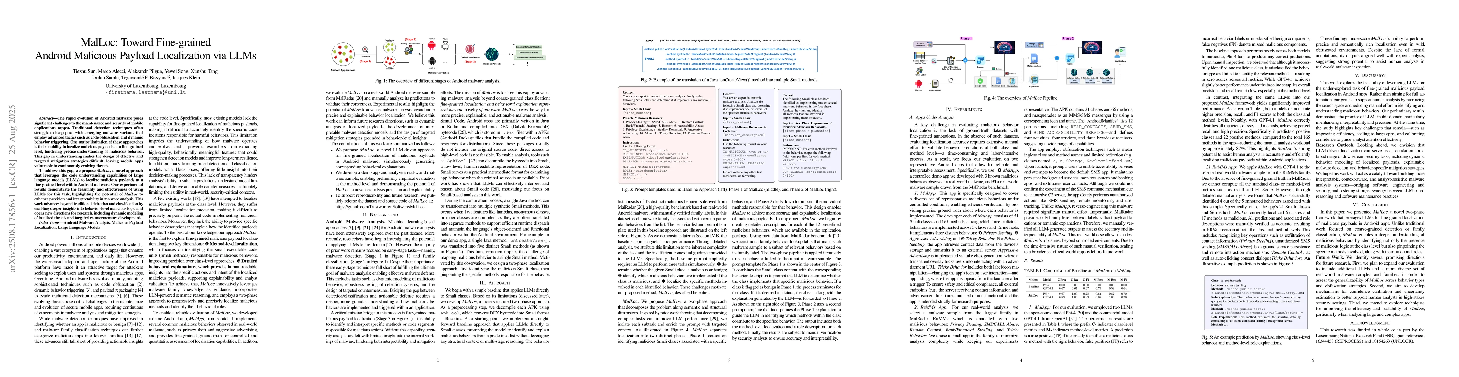 The rapid evolution of Android malware poses significant challenges to the maintenance and security of mobile applications (apps). Traditional detection techniques often struggle to keep pace with emerging malware variants that employ advanced tactics such as code obfuscation and dynamic behavior triggering. One major limitation of these approaches is their inability to localize malicious payloads at a fine-grained level, hindering precise understanding of malicious behavior. This gap in understanding makes the design of effective and targeted mitigation strategies difficult, leaving mobile apps vulnerable to continuously evolving threats. To address this gap, we propose MalLoc, a novel approach that leverages the code understanding capabilities of large language models (LLMs) to localize malicious payloads at a fine-grained level within Android malware. Our experimental results demonstrate the feasibility and effectiveness of using LLMs for this task, highlighting the potential of MalLoc to enhance precision and interpretability in malware analysis. This work advances beyond traditional detection and classification by enabling deeper insights into behavior-level malicious logic and opens new directions for research, including dynamic modeling of localized threats and targeted countermeasure development.