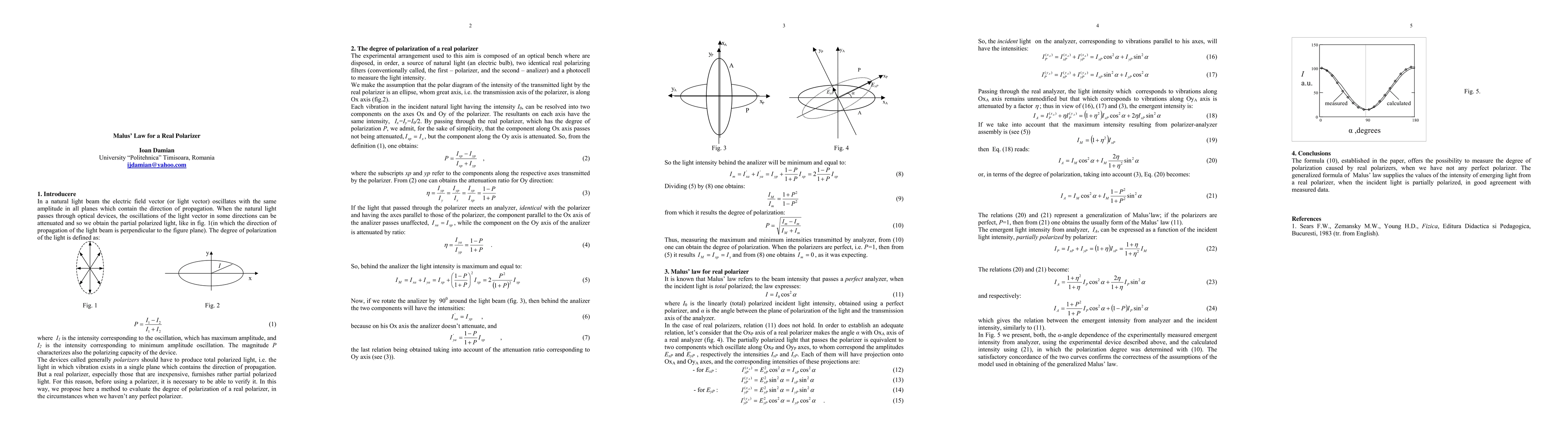 We present a possibility to measure the degree of polarization of a partially polarized light beam furnished by a real (imperfect) polarizer. A generalized formula for the Malus' law is derived, which holds when a partially polarized light beam passes through a real polarizer.