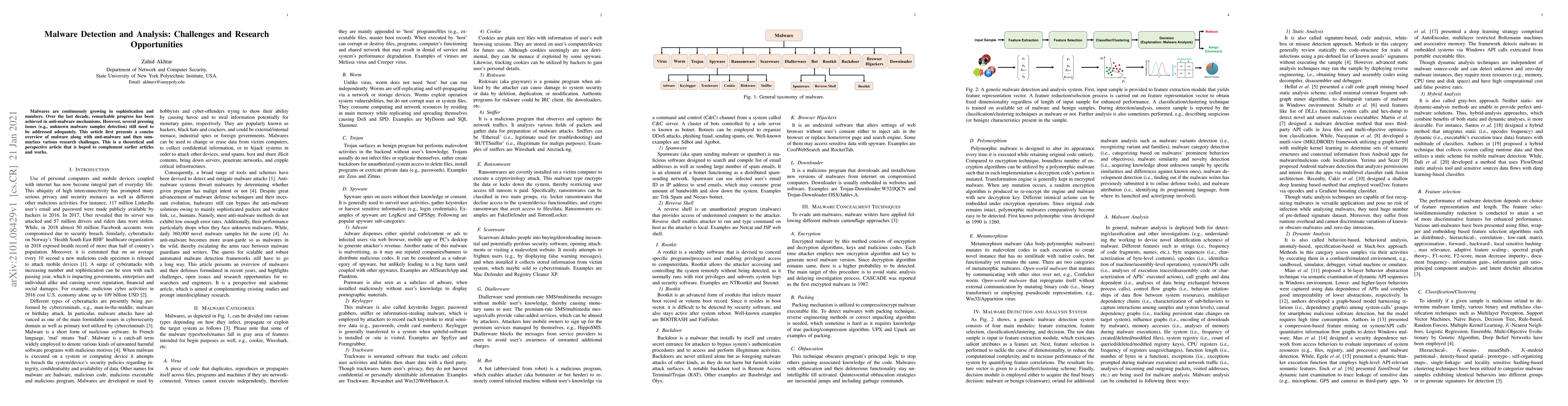 Malwares are continuously growing in sophistication and numbers. Over the last decade, remarkable progress has been achieved in anti-malware mechanisms. However, several pressing issues (e.g., unknown malware samples detection) still need to be addressed adequately. This article first presents a concise overview of malware along with anti-malware and then summarizes various research challenges. This is a theoretical and perspective article that is hoped to complement earlier articles and works.