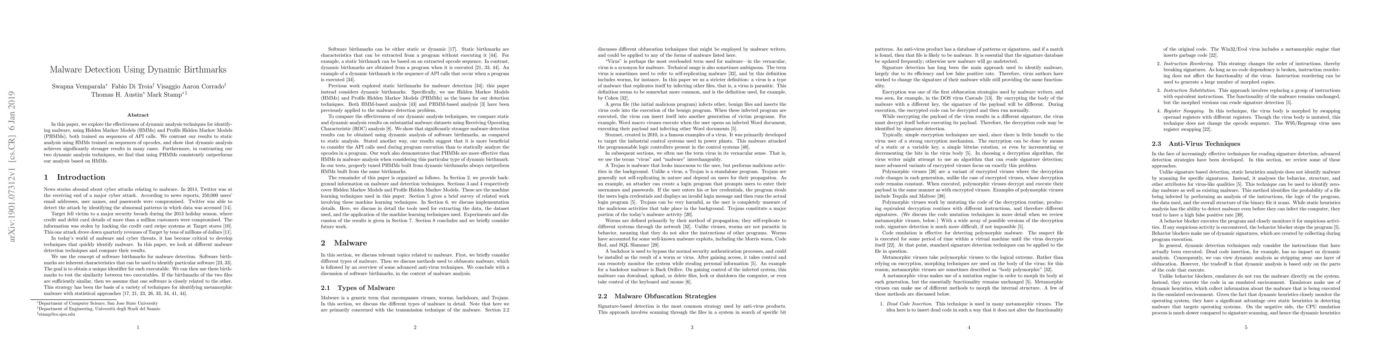 Mark Stamp, Fabio Di Troia, Anusha Damodaran et al.