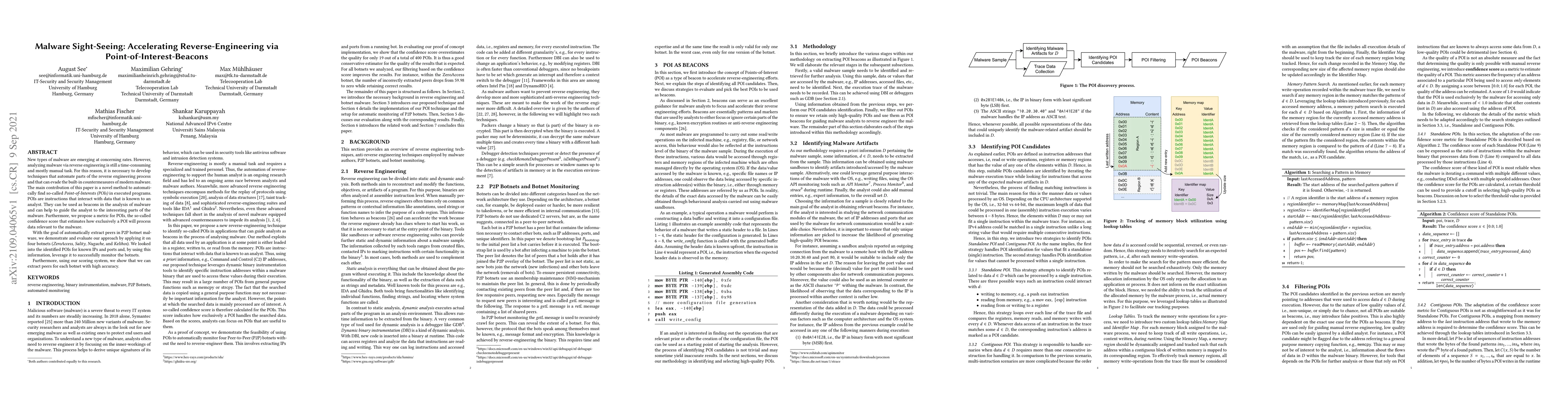 This paper introduces a method to automate the reverse engineering of malware by identifying Points-of-Interest (POIs) that interact with known data, acting as beacons to guide analysts. It proposes a confidence score metric to evaluate POIs' relevance, demonstrating its effectiveness in extracting peers from four botnets with high accuracy.