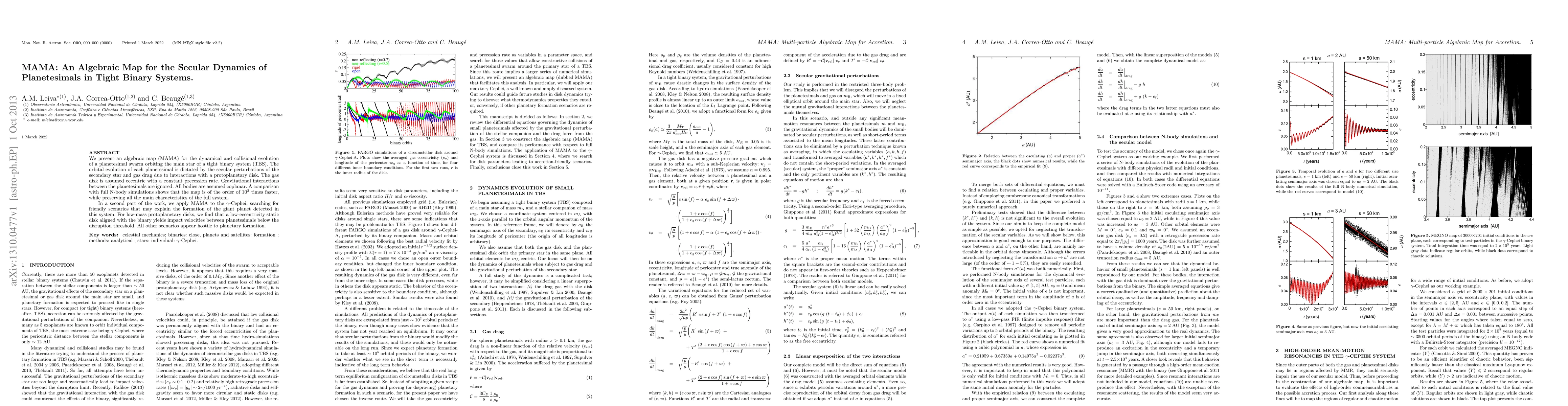We present an algebraic map (MAMA) for the dynamical and collisional evolution of a planetesimal swarm orbiting the main star of a tight binary system (TBS). The orbital evolution of each planetesimal is dictated by the secular perturbations of the secondary star and gas drag due to interactions with a protoplanetary disk. The gas disk is assumed eccentric with a constant precession rate. Gravitational interactions between the planetesimals are ignored. All bodies are assumed coplanar. A comparison with full N-body simulations shows that the map is of the order of 100 times faster, while preserving all the main characteristics of the full system. In a second part of the work, we apply MAMA to the \gamma-Cephei, searching for friendly scenarios that may explain the formation of the giant planet detected in this system. For low-mass protoplanetary disks, we find that a low-eccentricity static disk aligned with the binary yields impact velocities between planetesimals below the disruption threshold. All other scenarios appear hostile to planetary formation.