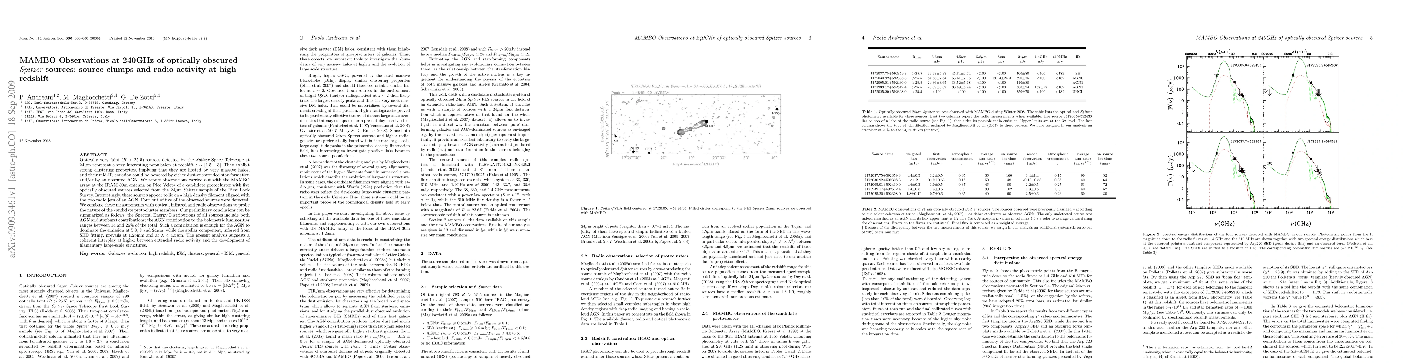 This paper reports MAMBO observations at 240GHz of optically obscured Spitzer sources, revealing that four out of five sources exhibit both AGN and starburst contributions, with AGN dominating mid-IR emission. The study suggests a connection between high-redshift radio activity and filamentary large-scale structures.
