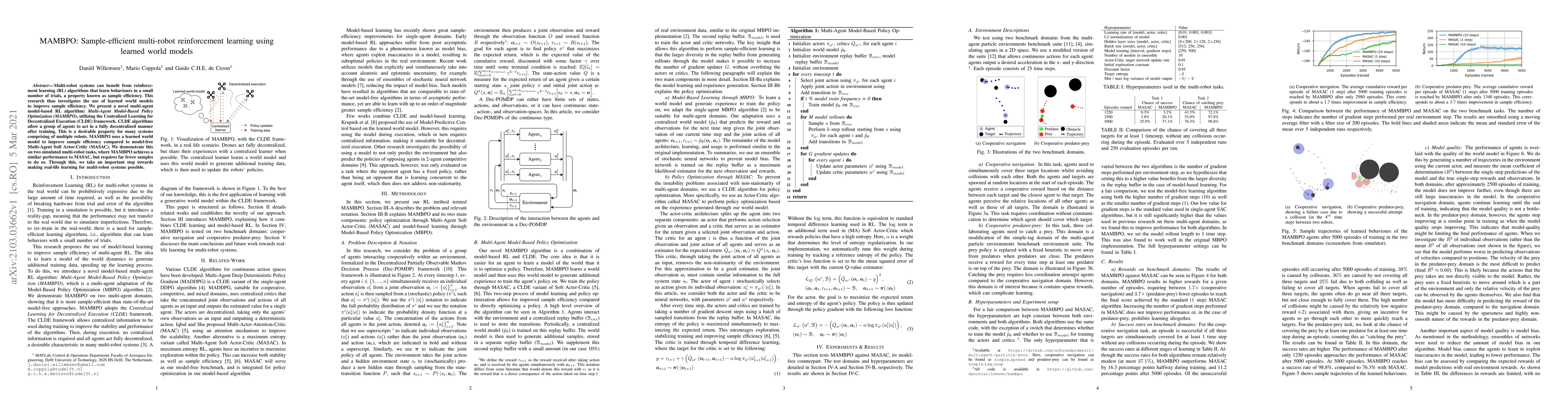 Researchers developed MAMBPO, a multi-robot reinforcement learning algorithm that uses learned world models to improve sample efficiency, achieving similar performance to existing methods with significantly fewer samples.