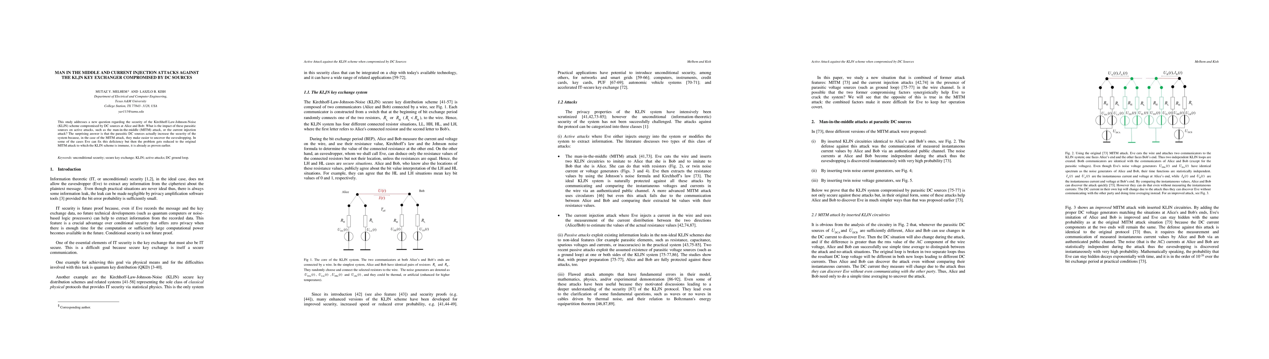 This study reveals that parasitic DC sources in the Kirchhoff-Law-Johnson-Noise (KLJN) scheme enhance security against man-in-the-middle attacks by making eavesdropping easier to detect, despite potentially complicating the attack. The KLJN scheme remains immune to the original MITM attack.