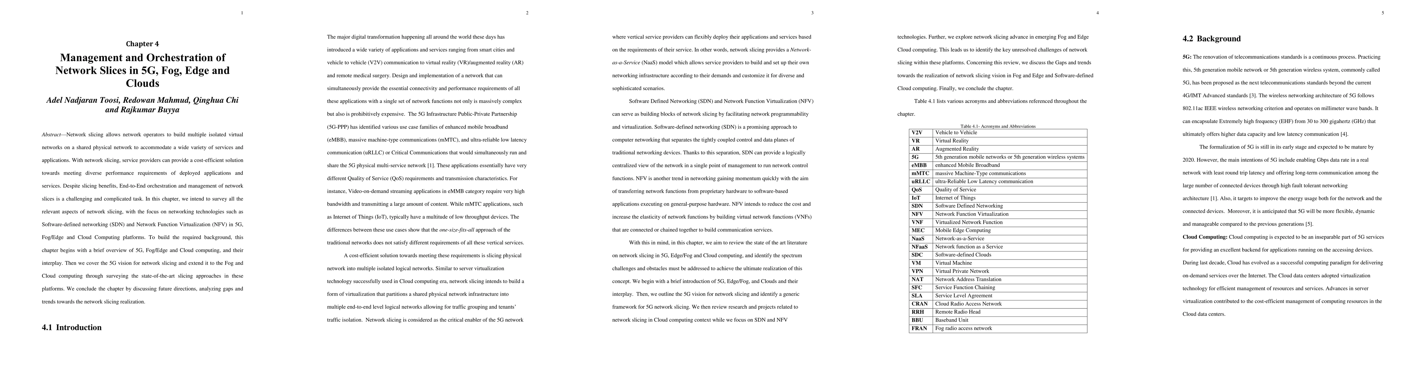 This paper surveys the orchestration and management of network slices across 5G, Fog, Edge, and Cloud computing platforms, focusing on technologies like SDN and NFV. It provides an overview of these technologies and discusses the challenges and future directions in network slicing.