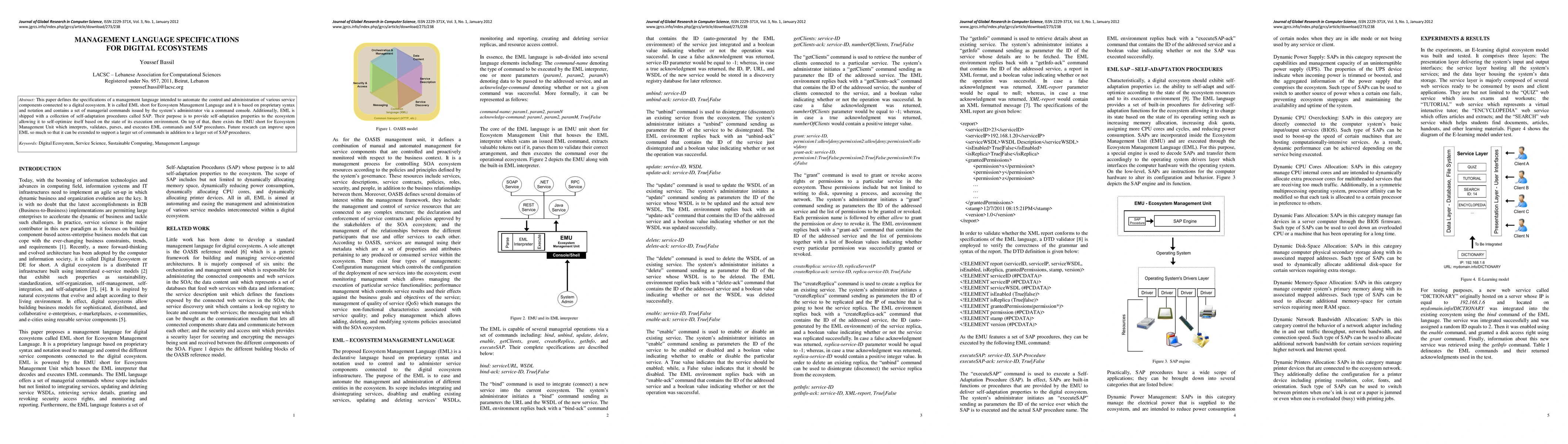 This paper introduces EML, a proprietary management language for automating the control and administration of digital ecosystem components, featuring self-adaptation procedures and an Ecosystem Management Unit for command execution. Future enhancements aim to expand its command and procedure capabilities.
