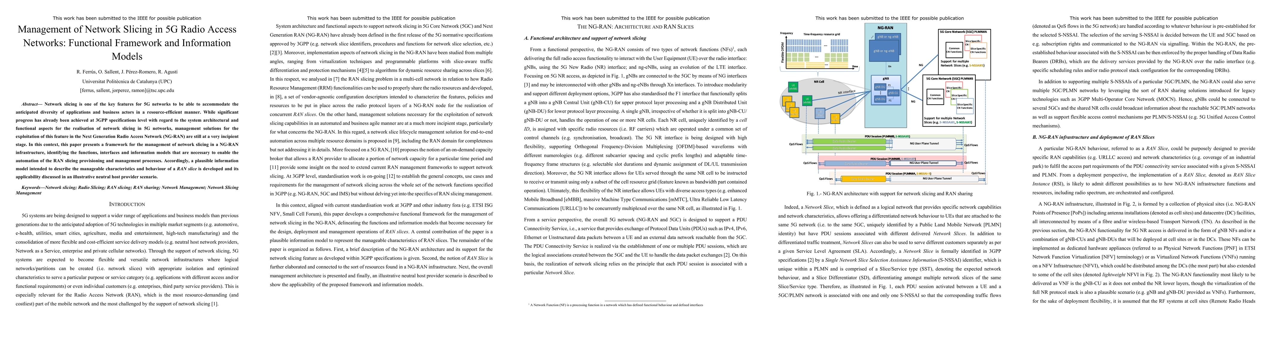 This paper introduces a framework for managing network slicing in 5G's Next Generation Radio Access Network (NG-RAN), detailing necessary functions, interfaces, and information models to automate RAN slicing processes. It also develops an information model to illustrate the manageable characteristics of a RAN slice in a neutral host provider scenario.