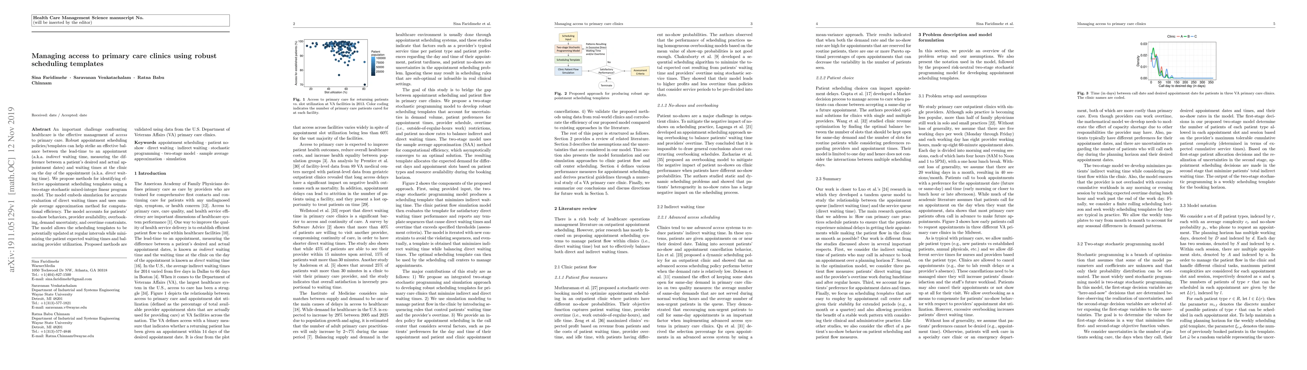 This paper proposes a two-stage stochastic mixed-integer linear programming model to identify effective scheduling templates for managing access to primary care clinics, balancing lead-time and direct waiting times while accounting for patient no-shows and demand uncertainty. The model is validated using data from VA primary care clinics.