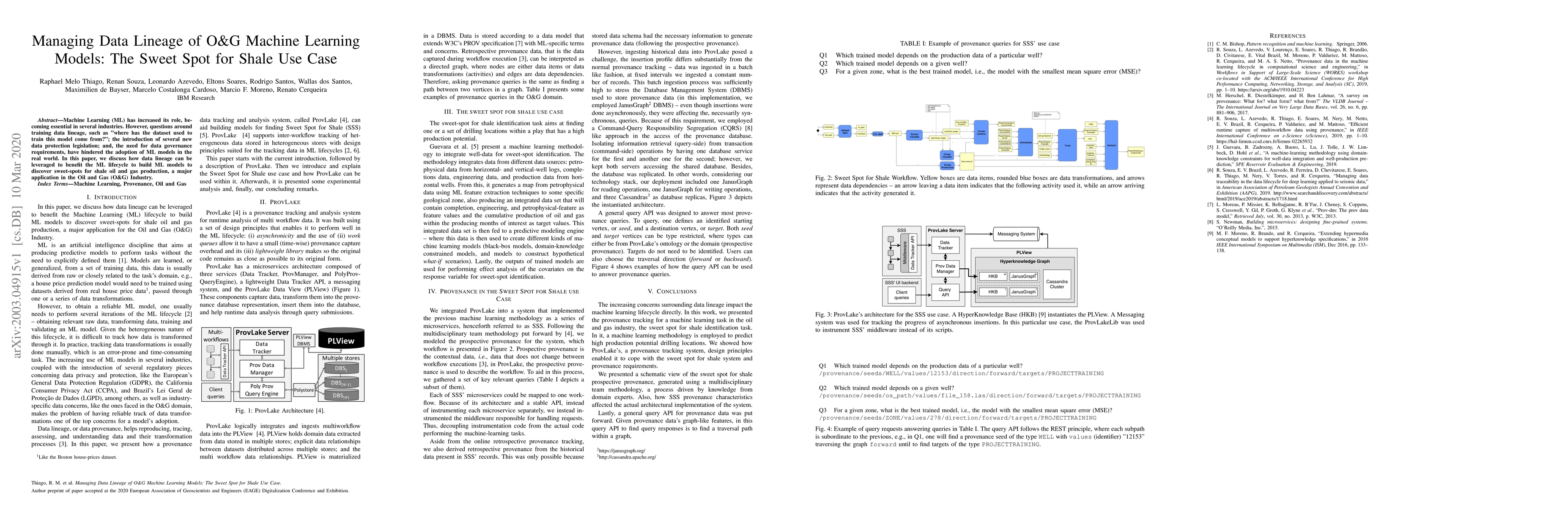 This paper discusses how data lineage can help manage machine learning models in the Oil and Gas industry, improving data governance and adoption. It explores leveraging data lineage to discover 'sweet-spots' for shale oil and gas production.