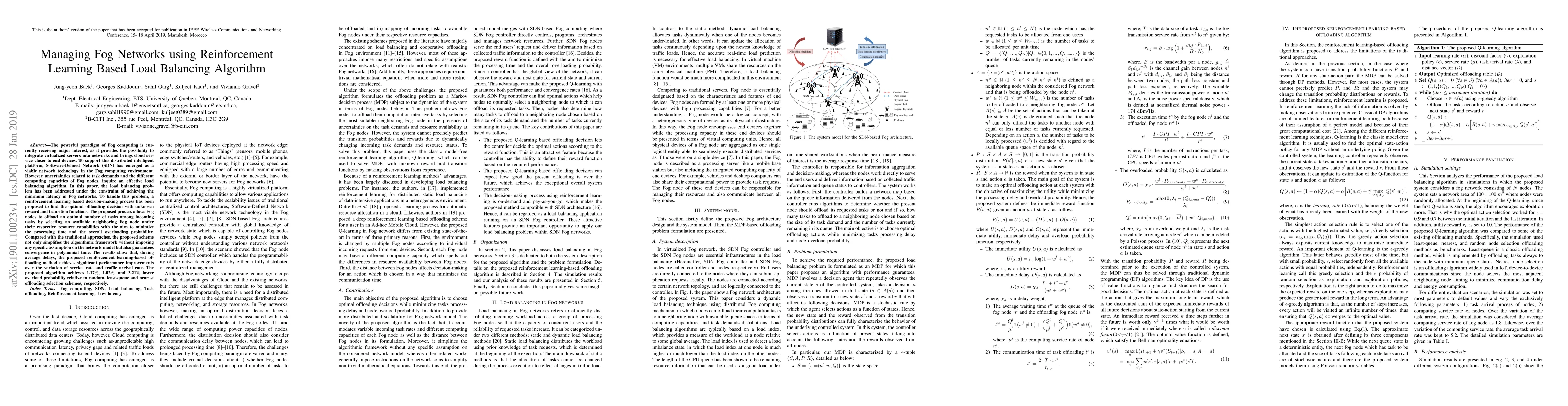 The research proposes a reinforcement learning-based load balancing algorithm for managing Fog networks, formulating the offloading problem as a Markov Decision Process (MDP) to optimize actions for minimal processing delay and overload probability.