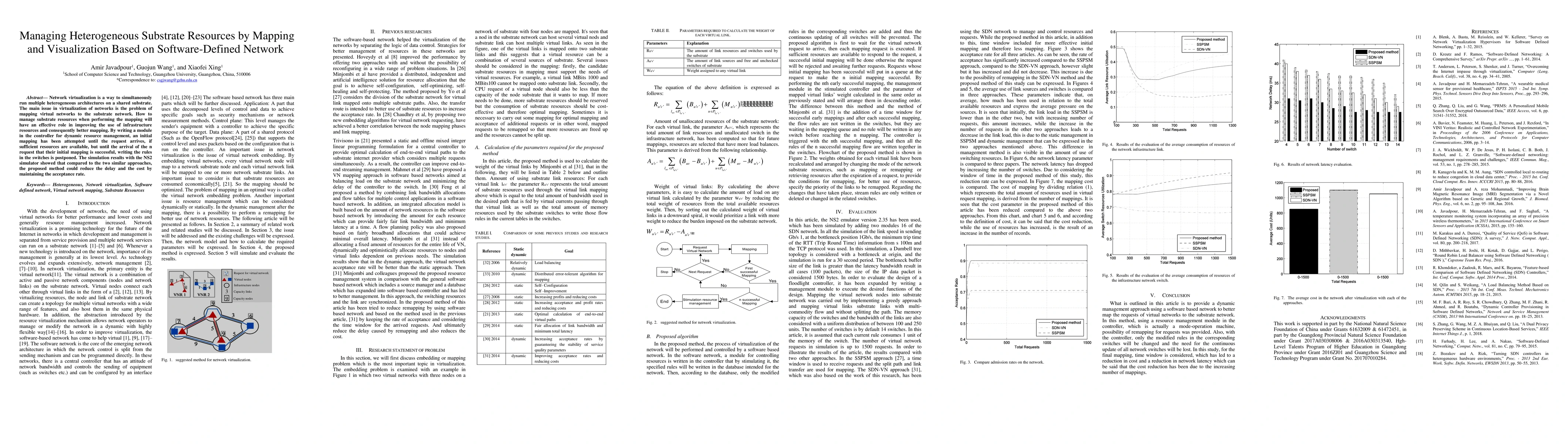 This paper proposes a method for managing heterogeneous substrate resources in network virtualization using software-defined networks. The approach dynamically maps virtual networks to the substrate network, reducing delay and cost while maintaining an acceptable resource utilization rate. Simulation results indicate improved performance compared to similar methods.