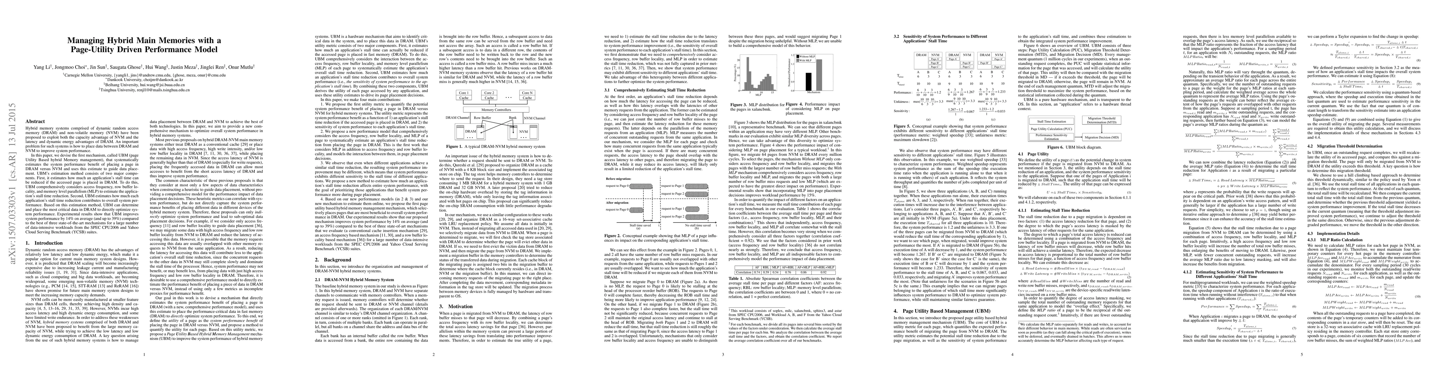 This paper introduces UBM, a novel mechanism for managing data placement in hybrid memory systems combining DRAM and NVM, aiming to optimize system performance. UBM estimates the performance benefits of placing pages in DRAM versus NVM based on factors like access frequency and memory parallelism, and it shows an average 14% improvement over existing methods for various workloads.