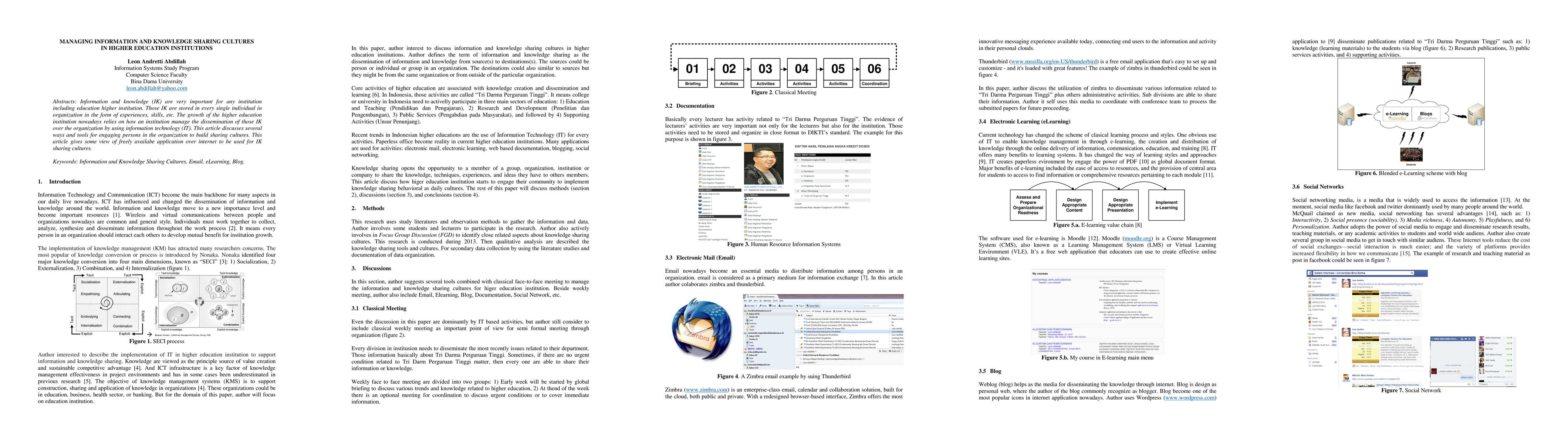 A study on managing information and knowledge sharing in higher education institutions highlights ways to engage individuals in building sharing cultures using available internet applications. It focuses on tools for disseminating individual experiences and skills within the organization.