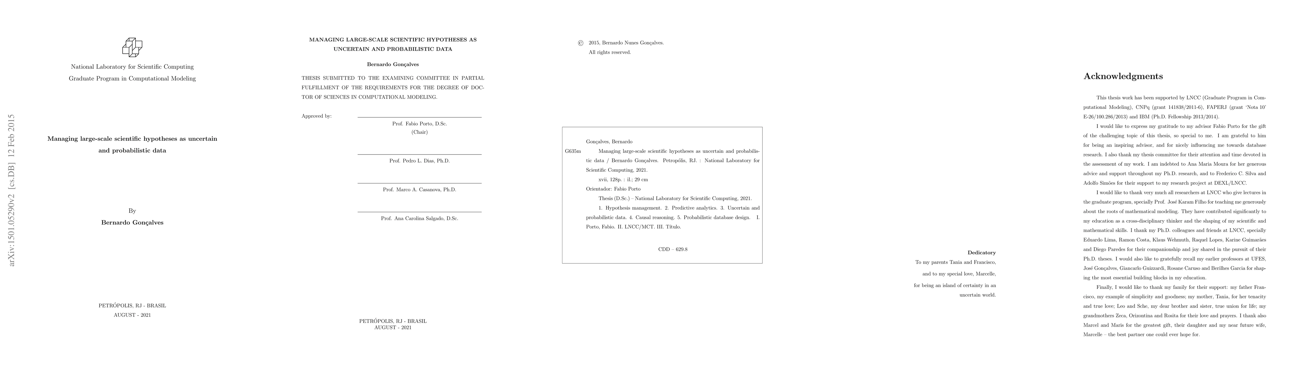 This research develops a method to represent and manage large scientific hypotheses as probabilistic data, enabling better causal reasoning and uncertainty propagation in predictive science. It uses mathematical equations and database techniques to efficiently encode, analyze, and combine competing hypotheses for data-driven scientific insights.