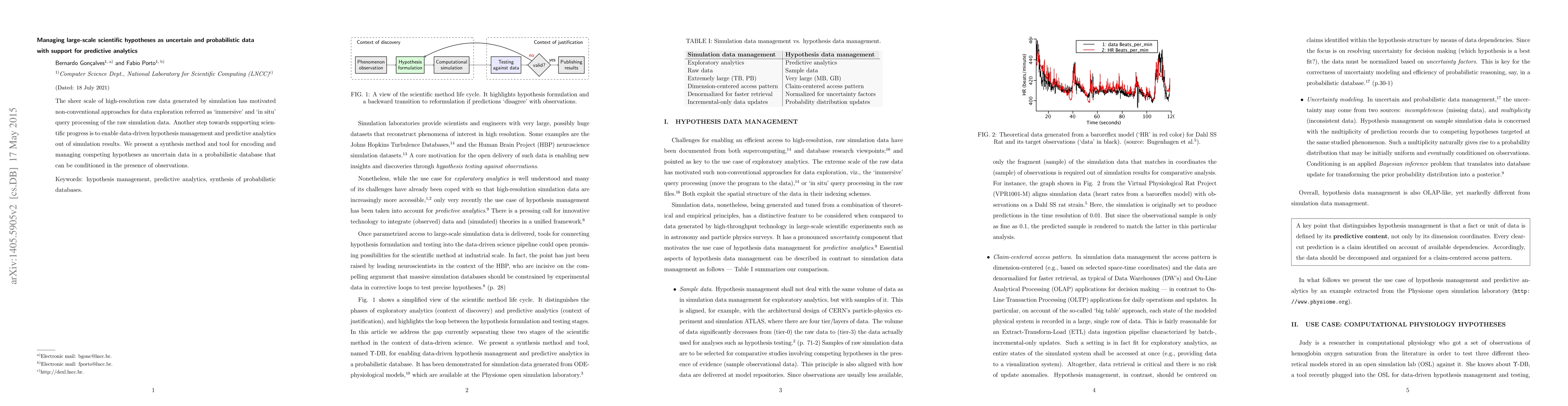 The sheer scale of high-resolution raw data generated by simulation has motivated non-conventional approaches for data exploration referred as `immersive' and `in situ' query processing of the raw simulation data. Another step towards supporting scientific progress is to enable data-driven hypothesis management and predictive analytics out of simulation results. We present a synthesis method and tool for encoding and managing competing hypotheses as uncertain data in a probabilistic database that can be conditioned in the presence of observations.