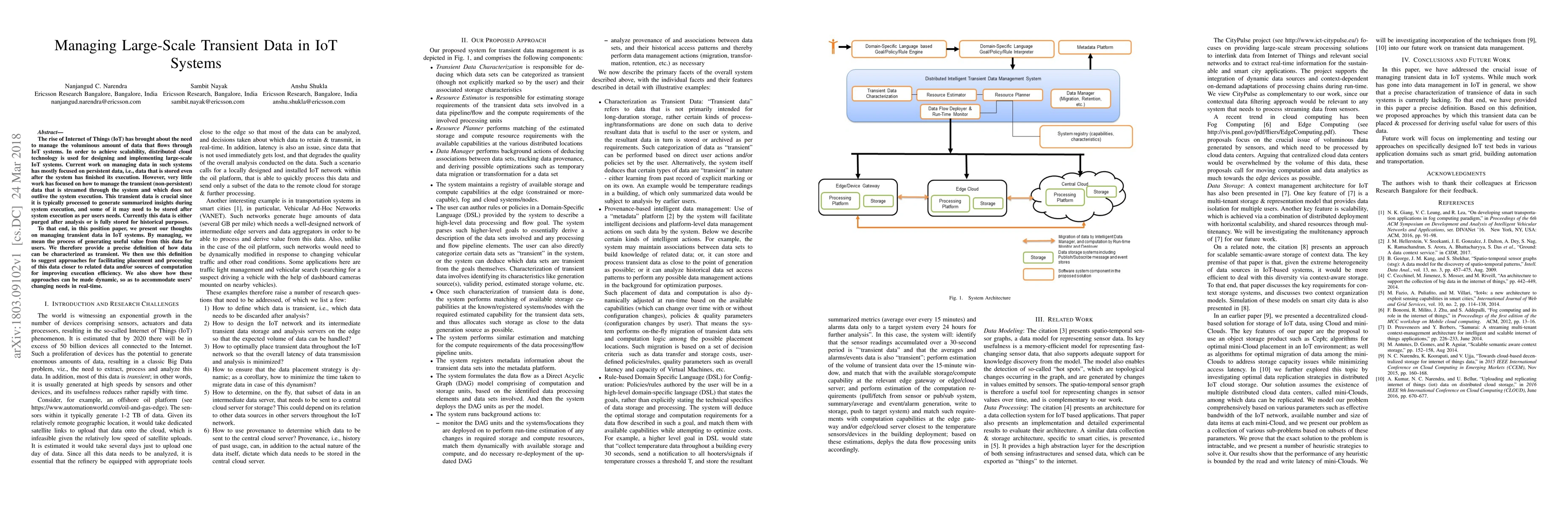 The work distinguishes itself by focusing on transient data management in IoT systems, proposing dynamic approaches for placement and processing of transient data closer to related data and computation sources.
