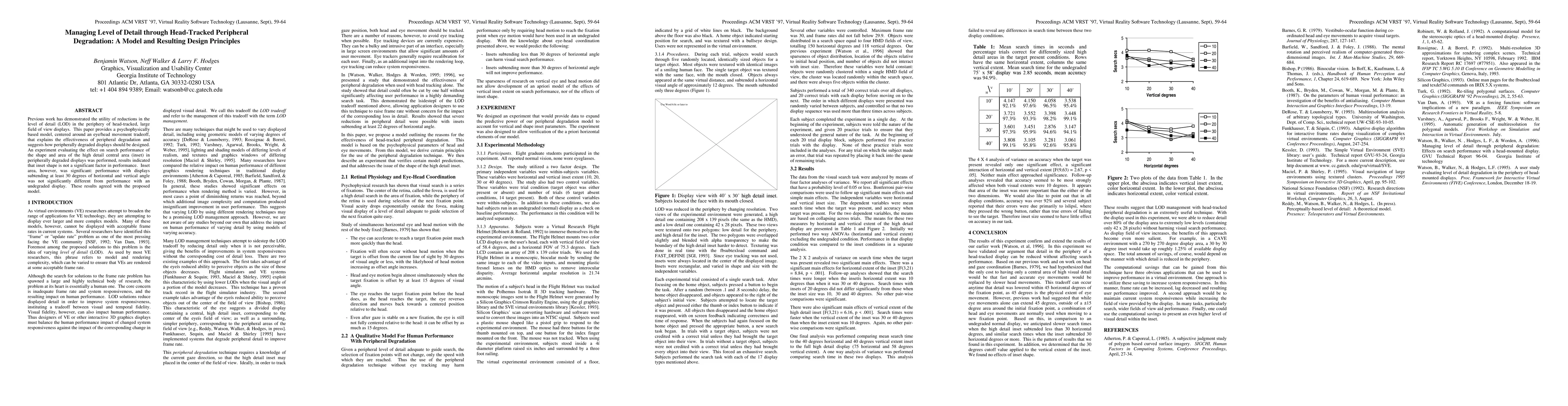 This research demonstrates that peripheral degradation techniques can substantially reduce computational load without impairing search performance, enabling more efficient virtual environment rendering and wider field of view applications.