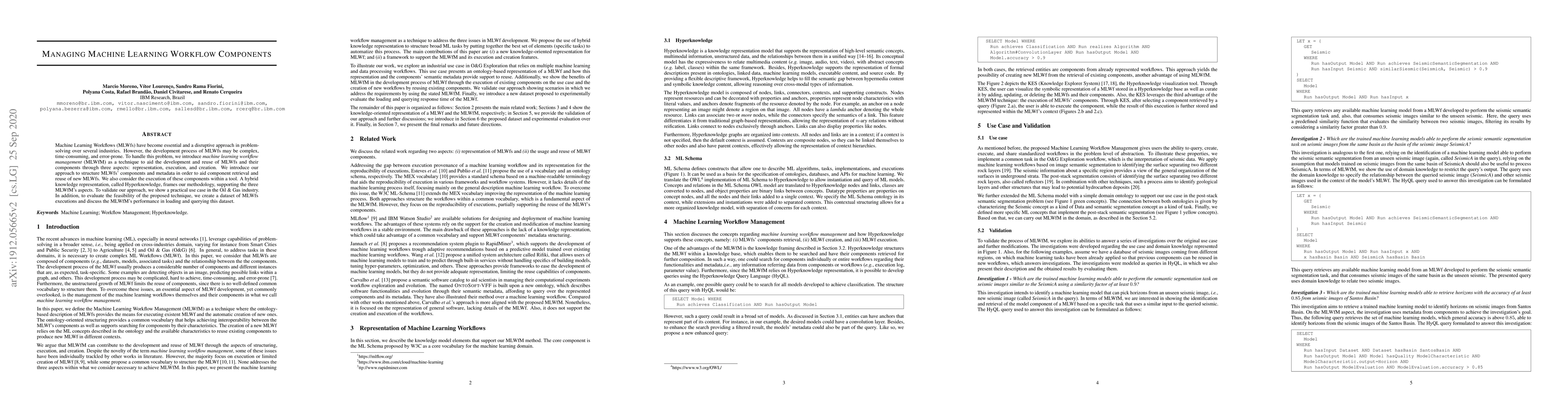 This paper introduces machine learning workflow management to simplify development and reuse of ML workflows in industries like Oil & Gas. It proposes a hybrid knowledge representation framework called Hyperknowledge to structure and execute components.
