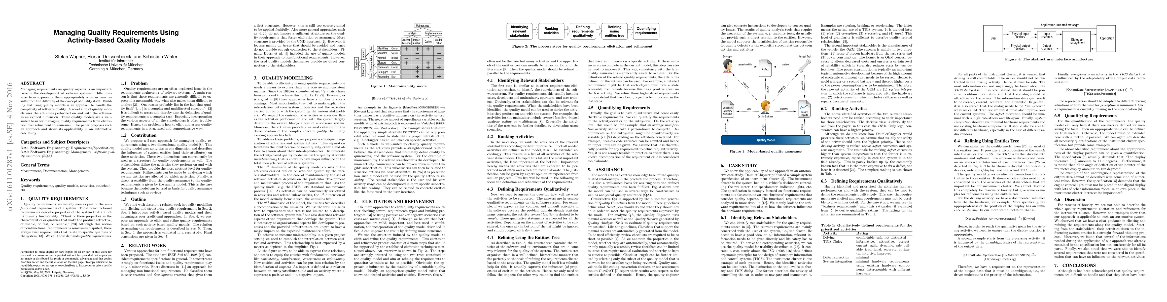 This paper proposes a novel activity-based quality model to manage quality requirements in software development, demonstrating its effectiveness through an automotive case study. The approach facilitates the elicitation, refinement, and assurance of quality requirements by explicitly incorporating software activities.