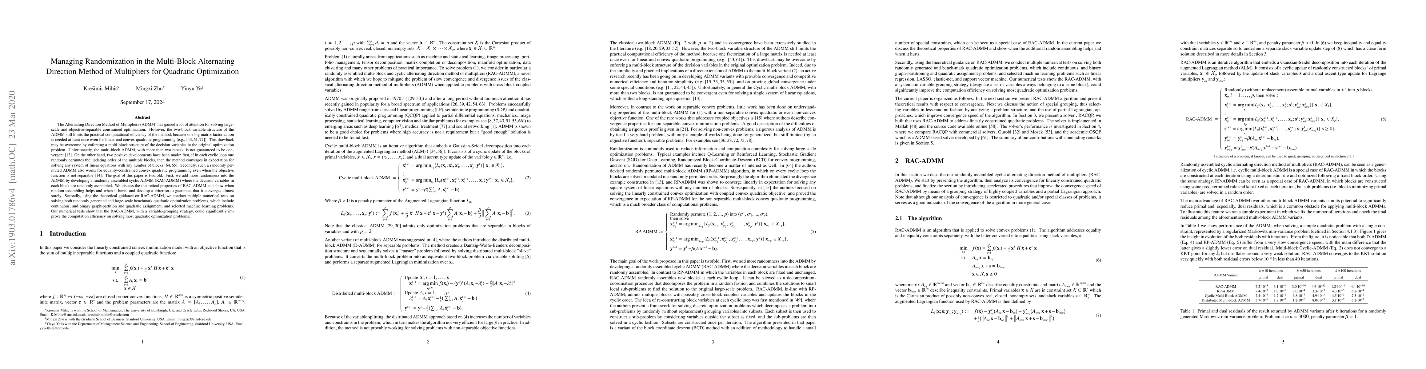 This paper proposes a randomly assembled cyclic ADMM (RAC-ADMM) to enhance the efficiency of multi-block ADMM for solving quadratic optimization problems. It demonstrates that random permutations in updating blocks can ensure convergence and improve computational efficiency for various optimization problems.